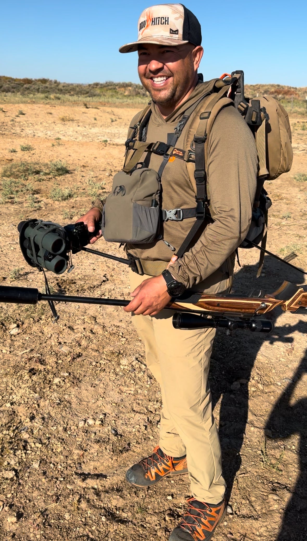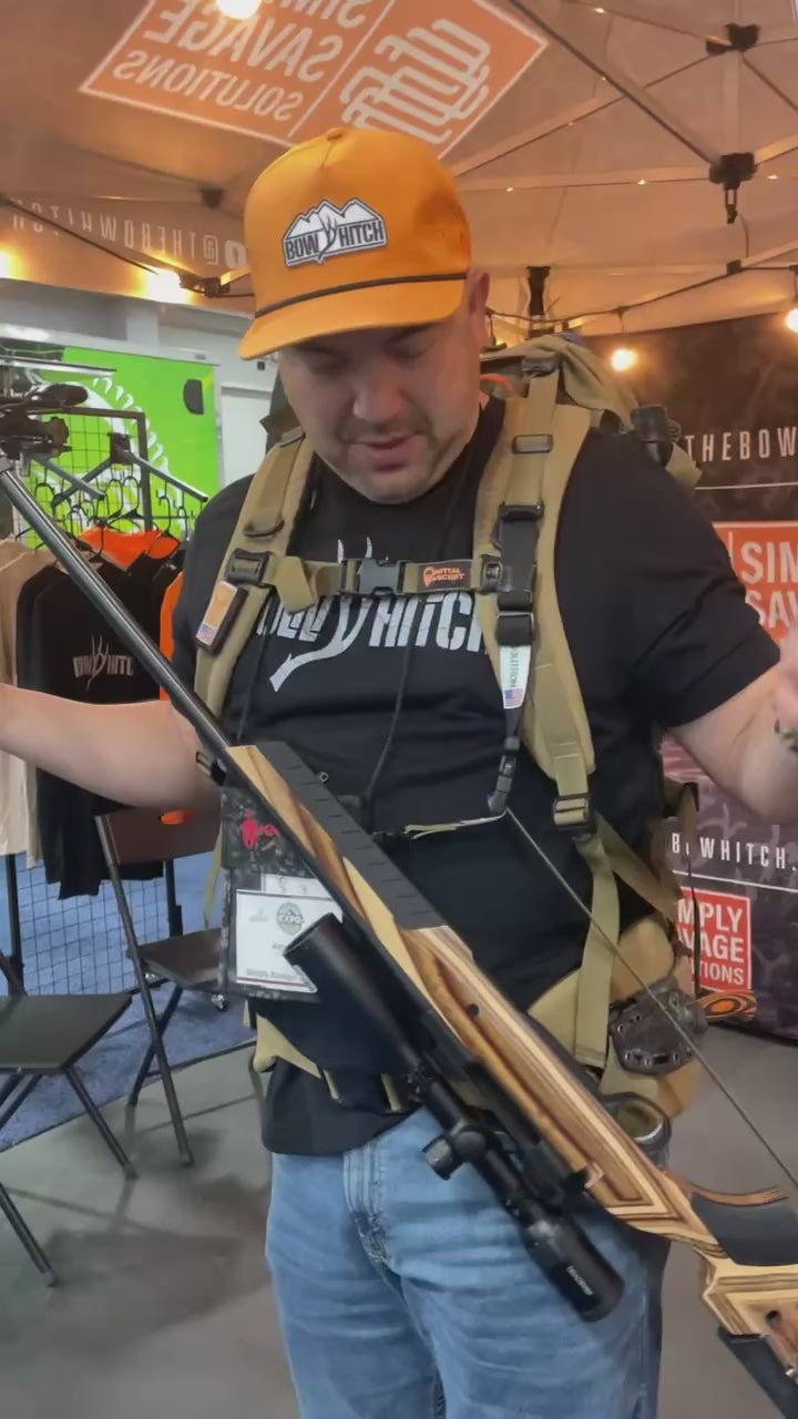 A unique rifle sling that allows your backpack to bare the weight of your rifle. If you have any experience with rifle hunting, you know that carrying a rifle sucks!!! Our package comes with a sling, attachment swivels, and a pack strap that will attach to any 1" or less webbing. Our system has a floating buckle that allows you to adjust the angle of the rifle for safety purposes, or for comfort. With the right adjustment, your rifle can be drawn without having to release it from the back strap. If the rifle has to be released to get placed on a tripod, simply press the buttons on the buckle and it's free. Should you drop your pack during a stalk, the sling can be adjusted to carry over your shoulder. The Solution is also compatible with our 2A sling.